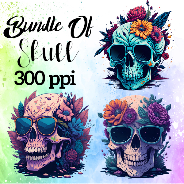 Illustration Of A Skull Wearing Sunglasses Bundle 8 PNG Files