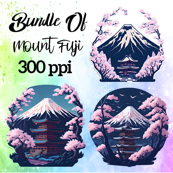 Mount Fuji Cherry Blossoms Bundle 8 PNG Files