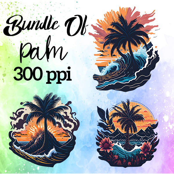 Vintage Palm Tree Sublimation Clipart Bundle 8 PNG Files