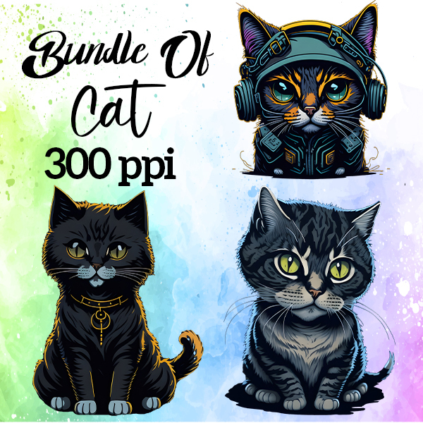 Cute Cat Sublimation Clipart Bundle 7 PNG Files