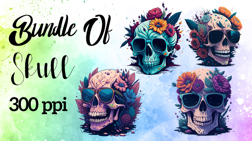 Illustration Of A Skull Wearing Sunglasses Bundle 8 PNG Files